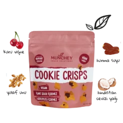 🍒 Cookie Crisps | Vişneli Doğal Atıştırmalık Vişnenin eşsiz ferahlığı ile kurabiyenin çıtır mutluluğu buluştu!Tatlı krizlerinizde içiniz rahat bir seçenek arıyorsanız, Cookie Crisps tam size göre.İster tek başına atıştırmalık olarak, ister dondurma, yoğurt veya tatlılarınızın üzerine ekleyerek tüketebilirsiniz. ✅ Öne Çıkan Özellikler: 3.2 gram bitkisel protein Vegan Şeker ilavesiz Yüksek lif Koruyucu içermez 🌾 İçindekiler: Hurma suyu, yulaf unu, hindistancevizi unu, hindistancevizi yağı, kuru vişne Tatlı ihtiyacınıza sağlıklı bir dokunuş!Cookie Crisps ile doğal, besleyici ve lezzet dolu anlar sizi bekliyor.