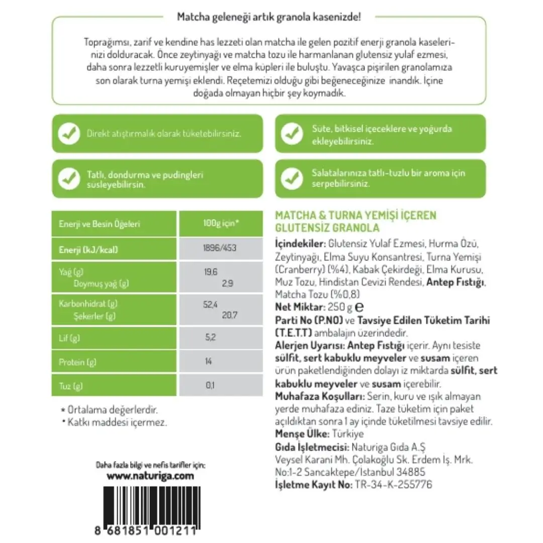 Naturiga Glutensiz Matcha & Cranberry Granola(250 gr)
